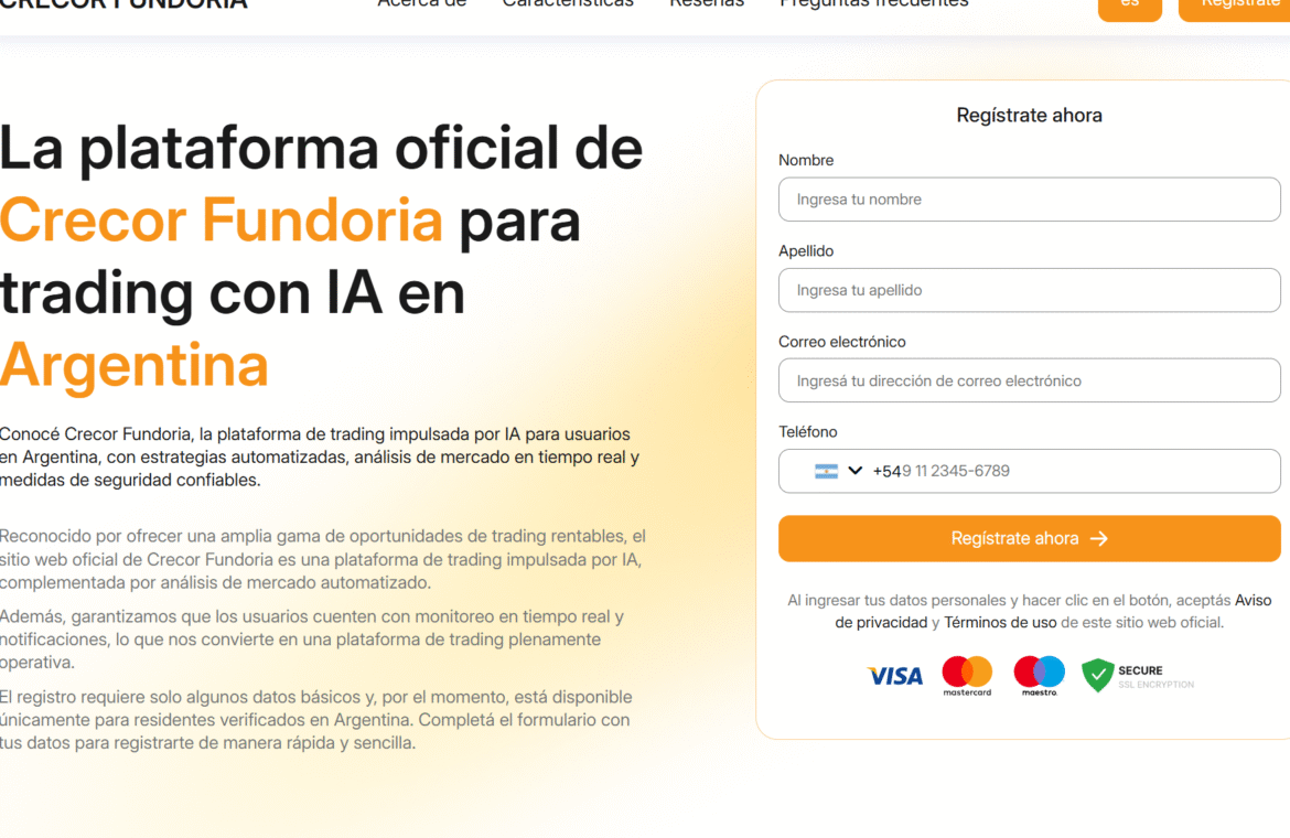 Crecor Fundoria позиционируется как высокотехнологичная платформа для автоматизированного трейдинга, ориентированная преимущественно на рынок Аргентины и Латинской Америки. Основной акцент делается на использовании алгоритмов ИИ для анализа рынков в реальном времени и исполнения сделок с точностью до 85%.